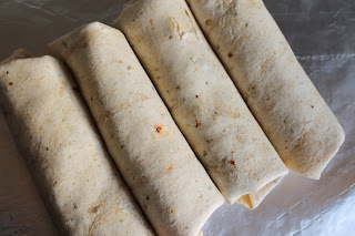 Fold the 2 sides of the tortilla in first, then fold the bottom and roll up into a burrito.